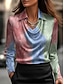 نسائي قميص ظل أنيق كاجوال كم طويل رقبة درابيه قمصان عادية عمل مناسب للبس اليومي مناسب للعطلات طباعة ثنيات أزرق الربيع الخريف