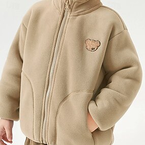 أطفال للصبيان سترة الصوف سترة خارجية معطف ملابس خارجية لون الصلبة كم طويل سحاب جيب راحة الدفء ناعم معطف الأماكن المفتوحة موضة يوميا أحمر أخضر كاكي الربيع الخريف 4 سنوات +