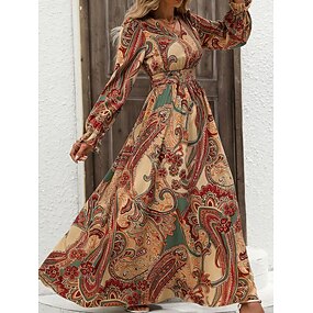 نسائي مقاس أوروبي / أمريكي فستان طويل ماكسي فستان شيث فستان سوينج فستان خفيف فستان بوهو أنيق بوهيميا عتيق جفاء عطلة مناسب للحفلات عيد الحبّ نحيل طباعة ثلاثية الأبعاد مجرد متعدد الألوان بدون كم