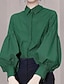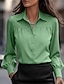 نسائي قميص كشكش Buttons سهل سيدات كم طويل كم ضيق قبعة القميص قمصان عادية مناسب للبس اليومي عمل أخضر عشبي أخضر البيج وردي الصيف الربيع