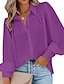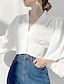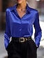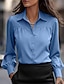 نسائي قميص أنيقة متأنق بلوزة من الساتان مكشكش سهل أنيق الحديث كم طويل كم ضيق V رقبة قمصان عادية عمل مناسب للعطلات مناسب للخارج أزرق شامبانيا أرجواني الخريف
