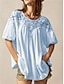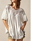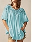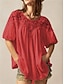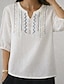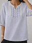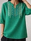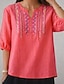 نسائي تيشيرت بوهو تي شيرت من القطن والكتان تي شيرت بخطوة مطرز عتيق أنيق عرقي نصف كم كم ضيق V رقبة قمصان عادية مناسب للبس اليومي مناسب للخارج أبيض أحمر أخضر أزرق فاتح الصيف الربيع