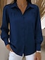 نسائي قمم متأنق مطوي ميتالك أنيق كم ضيق V رقبة قمصان عادية ضيف حفل زفاف ملابس الحفلات والسهرات لباس العمل أزرق البحرية الربيع، الخريف، الشتاء، الصيف