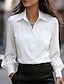 نسائي قميص قمم الصيف بلوزة مكشكش بقع Buttons لون الصلبة أنيق سيدات كلاسيكي كم طويل كم ضيق قبعة القميص قمصان عادية مناسب للبس اليومي عمل مناسب للخارج أزرق أسود أبيض وردي بلاشيهغ أزرق البحرية