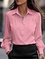 نسائي قميص أنيقة متأنق بلوزة من الساتان مكشكش بقع ثنيات لون الصلبة سهل أنيق عتيق يوميا كم طويل كم ضيق غير متماثل قمصان عادية مناسب للبس اليومي عمل مناسب للعطلات أزرق أسود أبيض وردي بلاشيهغ أرجواني