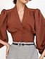 نسائي قمم اللف بلوزة شفافة قمم متأنق مطوي ميتالك أنيق حفلة كم طويل كم ضيق V رقبة قمصان عادية ضيف حفل زفاف ملابس الحفلات والسهرات شبه رسمي بني الخريف الشتاء