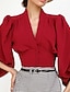 نسائي قميص ثنيات هندسي سهل أنيق سيدات كلاسيكي كم طويل كم ضيق V رقبة قمصان عادية مناسب للبس اليومي عمل مناسب للخارج أسود نبيذ الربيع الخريف