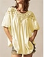 نسائي قمم الصيف بلوزة قمصان الدانتيل مكشكش دانتيل بقع سهل أنيق استوائي سيدات كم قصير كم ضيق رقبة عالية مدورة قمصان عادية مناسب للبس اليومي عمل مناسب للعطلات أبيض أصفر أحمر أزرق سماوي أزرق فاتح