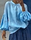 نسائي قمم الصيف بلوزة قمم متأنق مكشكش بقع Buttons لون الصلبة سهل أنيق عتيق سيدات كم طويل كم ضيق قبعة القميص قمصان عادية مناسب للبس اليومي عمل مناسب للعطلات أزرق أسود أبيض وردي بلاشيهغ أزرق البحرية