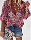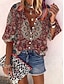 نسائي بلوزة Buttons طباعة الرسم أنيق كاجوال 3/4 الكم نصف كم كم ضيق V رقبة الرقبة المحززة قمصان عادية مناسب للبس اليومي نبيذ أحمر الصيف الربيع الخريف