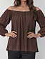 نسائي قماش الكتف المفتوح تي شيرت انقسام جانبي الطيات لون الصلبة أنيق عتيق كاجوال كم طويل كم ضيق دون الكتف قمصان عادية مناسب للبس اليومي مناسب للخارج كوفي الصيف الربيع الخريف