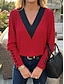 نسائي بلوزة Buttons ألوان متناوبة أنيق الحديث كم طويل كم ضيق V رقبة عمل أبيض وردي بلاشيهغ أحمر البيج الربيع الخريف