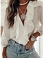 نسائي قميص كشكش لون الصلبة أنيق أساسي كاجوال كم طويل كم ضيق V رقبة قمصان عادية مناسب للبس اليومي مناسب للعطلات مناسب للخارج أبيض الصيف الربيع الخريف