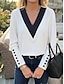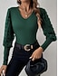 نسائي قميص بلوزة بقع شبكة لون الصلبة أساسي كاجوال كم طويل كم ضيق V رقبة قمصان عادية مناسب للبس اليومي أسود أبيض كاكي الربيع الخريف