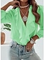 نسائي قميص بلوزة قمصان بأكمام طويلة بقع Buttons سهل أنيق كلاسيكي الحديث كم طويل كم ضيق V رقبة قمصان عادية مناسب للبس اليومي مناسب للعطلات مناسب للخارج نبيذ أخضر الصيف الربيع