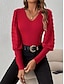 نسائي قميص بلوزة دانتيل مطرز لون الصلبة أساسي كاجوال كم طويل كم ضيق V رقبة قمصان عادية مناسب للبس اليومي أبيض الخريف الشتاء