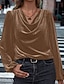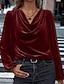 نسائي تي شيرت تي شيرت مخملي لون الصلبة أنيق كاجوال كم طويل كم ضيق رقبة درابيه قمصان عادية مناسب للبس اليومي مناسب للخارج نبيذ زهرة مغبرة أزرق البحرية أخضر داكن بني الربيع الخريف الشتاء