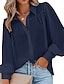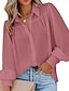 نسائي قميص قميص غير رسمي زر حتى القميص بلوزة مكشكش Buttons لون الصلبة سهل أنيق العطلة موضة كم طويل كم ضيق طوي قمصان عادية مناسب للبس اليومي شاطئ مناسب للعطلات أزرق أسود أبيض وردي بلاشيهغ أزرق البحرية