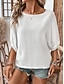نسائي انثى قميص غير رسمي مجرد فضفاض كم ضيق أسود 3/4 طول الكم أنيق العطلة V رقبة الصيف عبر الفصول