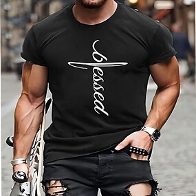 تيشيرت قصير الأكمام للرجال برسمة صليب المباركة