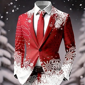 رجالي سترة معطف عيد الميلاد عطلة فضفاض كاجوال يومي كاجوال خريف / شتاء 100 ٪ بوليستر ندفة ثلجية طباعة ثلاثية الأبعاد Buttons الدفء مريح صدر فردي سترة رياضية أحمر 1 الأحمر 4 أحمر 3 أحمر فاتح