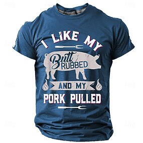 تي شيرت رجالي مضحك برسومات 'أحب أن يتم تدليك مؤخرتي ولحم الخنزير المسحوب' نكتة شواء فكاهية