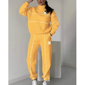 نسائي بدلة رياضية بنطلونات سترة رياضية جيب بسحاب ألوان متناوبة أطقم ملابس رياضية الخريف أسود أبيض اكتشف - حل ملابس الرياضة ركض الدفء ضد الهواء كم طويل رياضة ألبسة رياضية قابل للبسط عادي