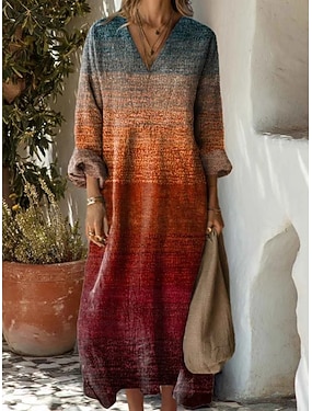 نسائي فستان طويل ماكسي لباس غير رسمي فستان شكل حرف A أنيق عتيق كاجوال عطلة مناسب للحفلات مناسب للبس اليومي فضفاض صالح ورد كم طويل V رقبة أزرق أرجواني برتقالي الربيع الخريف
