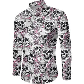 Halloween رجالي ملكة الثلج جمجمة الجليد قميص زر حتى القميص كم طويل الطراز القوطي الداكن مناسب للعطلات ملابس الشارع الربيع الخريف طوي طباعة ثلاثية الأبعاد قميص بياقة وردي بلاشيهغ أزرق أرجواني أخضر