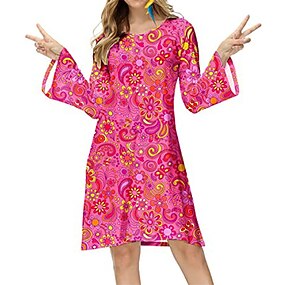 عتيق / معتق الستينات ستايل هبي فساتين باندانا للرأس 70s ملابس تنكرية للنساء ستايل هبي V رقبة ملابس تنكرية نسائي عيد الرعب مهرجان حفلة تنكرية حفل / مساء فخر موكب شهر الفخر للبالغين فستان عقال