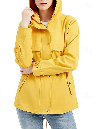 نسائي جاكيت كاجوال سترات المطر المقاومة للماء ومعاطف المطر مقاوم للماء ضد الهواء سحاب جيب موضة الخارج سهل مناسب للخارج عطلة نهاية الاسبوع سحاب عادية مع قبعة عادي كم طويل ملابس خارجية أسود أصفر أحمر