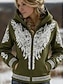 نسائي هوديس بسحاب سحاب جيب طباعة الرسم هندسي موضة الغربي كاجوال كم طويل مع قبعة قمصان عادية فضفاض شارع مناسب للبس اليومي أسود نبيذ أخضر الخريف الشتاء