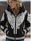 نسائي هوديس بسحاب سحاب جيب طباعة الرسم منقوش موضة الغربي كاجوال كم طويل مع قبعة قمصان عادية فضفاض شارع مناسب للبس اليومي أسود رمادي الخريف الشتاء