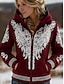 نسائي هوديس بسحاب سحاب جيب طباعة الرسم منقوش عتيق كاجوال بوهو كم طويل مع قبعة قمصان عادية شارع مناسب للبس اليومي أرجواني الربيع الخريف الشتاء