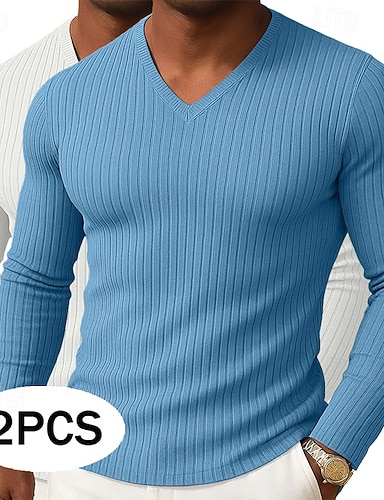 رجالي تي شيرت قميص العضلات تي شيرت مضلع متماسك تي الأعلى كم طويل V رقبة الربيع الخريف الشتاء سهل قطاع الحفرة موضة مصمم أساسي قطعتين حياكة أساسي عطلة شارع فضفاض أزرق رمادي أرجواني + أزرق أسود + كاكي