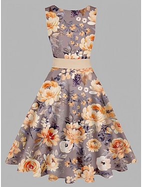 فساتين شاي عتيقة أنيقة للسيدات فستان ميدي تاريخ يومي طباعة مكشكش ورقبة دائرية بدون أكمام نحيف صيف ربيع 2023 أصفر أزرق SML XL