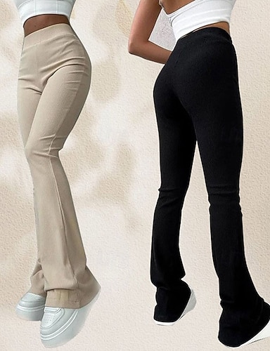 نسائي قاع الجرس تشينوز أناقة الشارع كاجوال مكتمل الطول الخصر متوسط سهل مرونة الخصر مريح مرن نسبياً الأماكن المفتوحة ملابس الرياضة مناسب للبس اليومي مشمش أسود الخريف الشتاء عادي