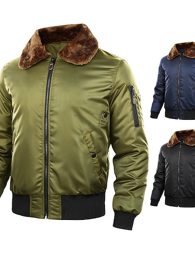 رجالي جاكيت شتوي سترة البخاخ مبطن رسمي رياضة في الهواء الطلق جاكيت ضد الرياح دافئ طوق من الصوف الخريف الشتاء لون الصلبة نشيط قبعة القميص عادية أسود أزرق البحرية جاكتس