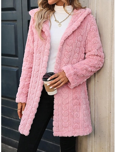 نسائي سترة شيربا مريح متنفس قماش الجاكار أنيق كاجوال سهل عطلة شارع فضفاض مناسب للبس اليومي الأمام مفتوح طويلة مع قبعة عادي كم طويل ملابس خارجية وردي بلاشيهغ الربيع الخريف