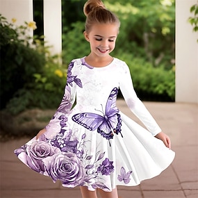 الفتيات 3D فراشة نجوم فستان فستان الكشكشة كم طويل الصيف الربيع عطلة مناسب للبس اليومي مناسب للعطلات جميل حلو أطفال 4-12 سنة لباس غير رسمي طول الركبة عادي