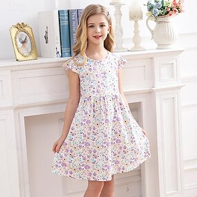 الفتيات 3D الرسم فراشة فستان كم قصير الصيف الربيع عطلة مناسب للبس اليومي مناسب للعطلات جميل حلو أطفال 4-12 سنة لباس غير رسمي فستان شكل حرف A طول الركبة عادي