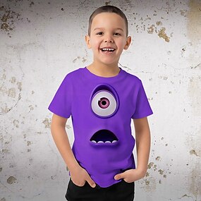 للصبيان 3D كارتون تي شيرت كنزة مطبوعة كم قصير الصيف الربيع موضة أساسي أطفال 4-12 سنة رقبة العمل الأماكن المفتوحة فضفاض مناسب للبس اليومي عادي