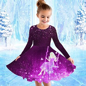 الفتيات 3D الرسم كارتون ندفة ثلجية فستان كم طويل الصيف الربيع عطلة مناسب للبس اليومي مناسب للعطلات أميرة جميل حلو أطفال 4-12 سنة لباس غير رسمي فستان شكل حرف A طول الركبة عادي