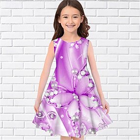 الفتيات 3D فراشة فستان بدون كم الصيف الربيع عطلة مناسب للبس اليومي مناسب للعطلات أميرة جميل حلو أطفال 4-12 سنة لباس غير رسمي فستان شكل حرف A طول الركبة عادي