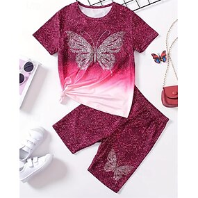 للفتيات 3D فراشة تيشيرت وشورت مجموعة كم قصير الصيف الربيع الرياضات موضة يوميا أطفال 4-12 سنة رقبة العمل الأماكن المفتوحة عطلة الرياضة قالب مثالي