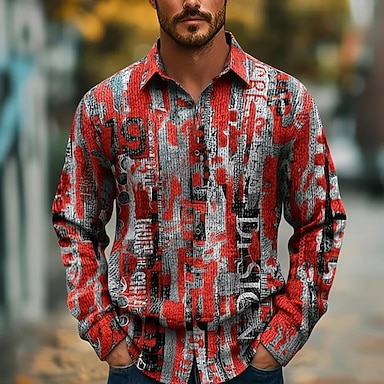 رجالي هندسي فن تجريدي قميص زر حتى القميص كم طويل ريترو خمر الأماكن المفتوحة فضفاض مناسب للعطلات الربيع الخريف طوي طباعة ثلاثية الأبعاد قميص بياقة أصفر أحمر أزرق