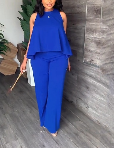 نسائي موضة أناقة الشارع يوميا مجموعات السراويل بدون كم رقبة دائرية لون الصلبة مكشكش فضفاض مناسب للبس اليومي سكني غامق أسود أبيض الربيع فضفاض صالح