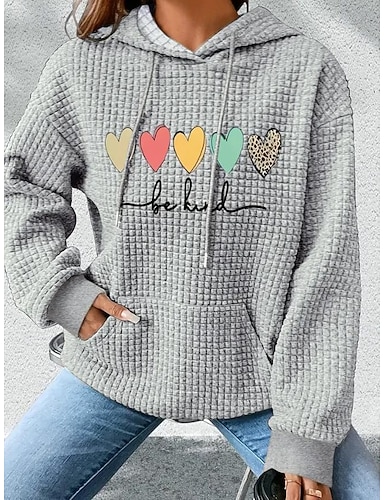 سويت شيرت بغطاء رأس على شكل قلب عيد الحب للنساء، بلوفر كاجوال لعيد الحب، مطبوع برباط، جيب أمامي، ملابس رياضية نشطة، بغطاء رأس وأكمام طويلة، مرن للغاية