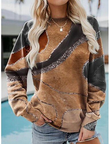 نسائي كنزة صوفية الرسم هندسي دافئ نشيط موضة كم طويل مع قبعة قمصان عادية شارع مناسب للبس اليومي فضفاض رباط طباعة أسود أزرق برتقالي الربيع الخريف الشتاء