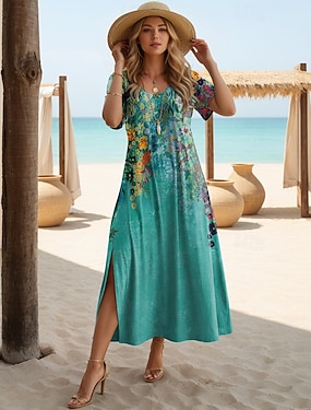 نسائي فستان طويل لباس غير رسمي فستان سوينج فساتين بوهو شيك بوهيميا كاجوال بوهو عطلة مناسب للبس اليومي فضفاض صالح ورد تاي داي 3/4 الكم V رقبة بنفسجي فاتح أخضر الصيف الربيع